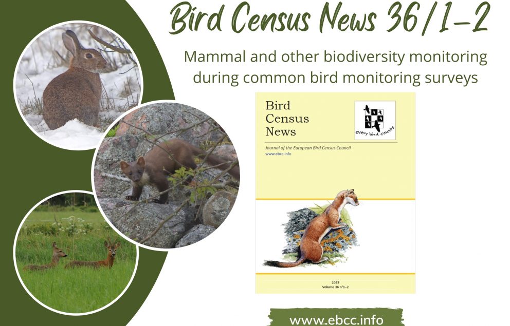 Aleksi Lehikoinen: Mammal and other biodiversity monitoring during common bird monitoring surveys. Bird Census News 2023, 36/1-2: 3–6. PDF